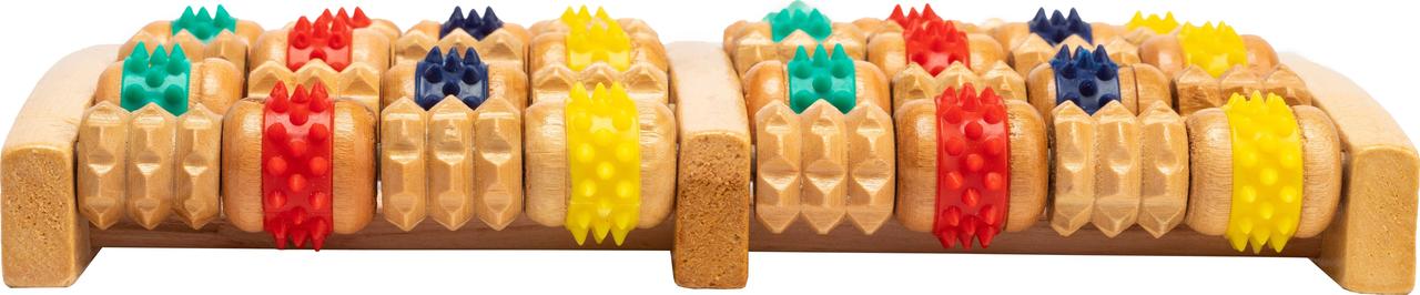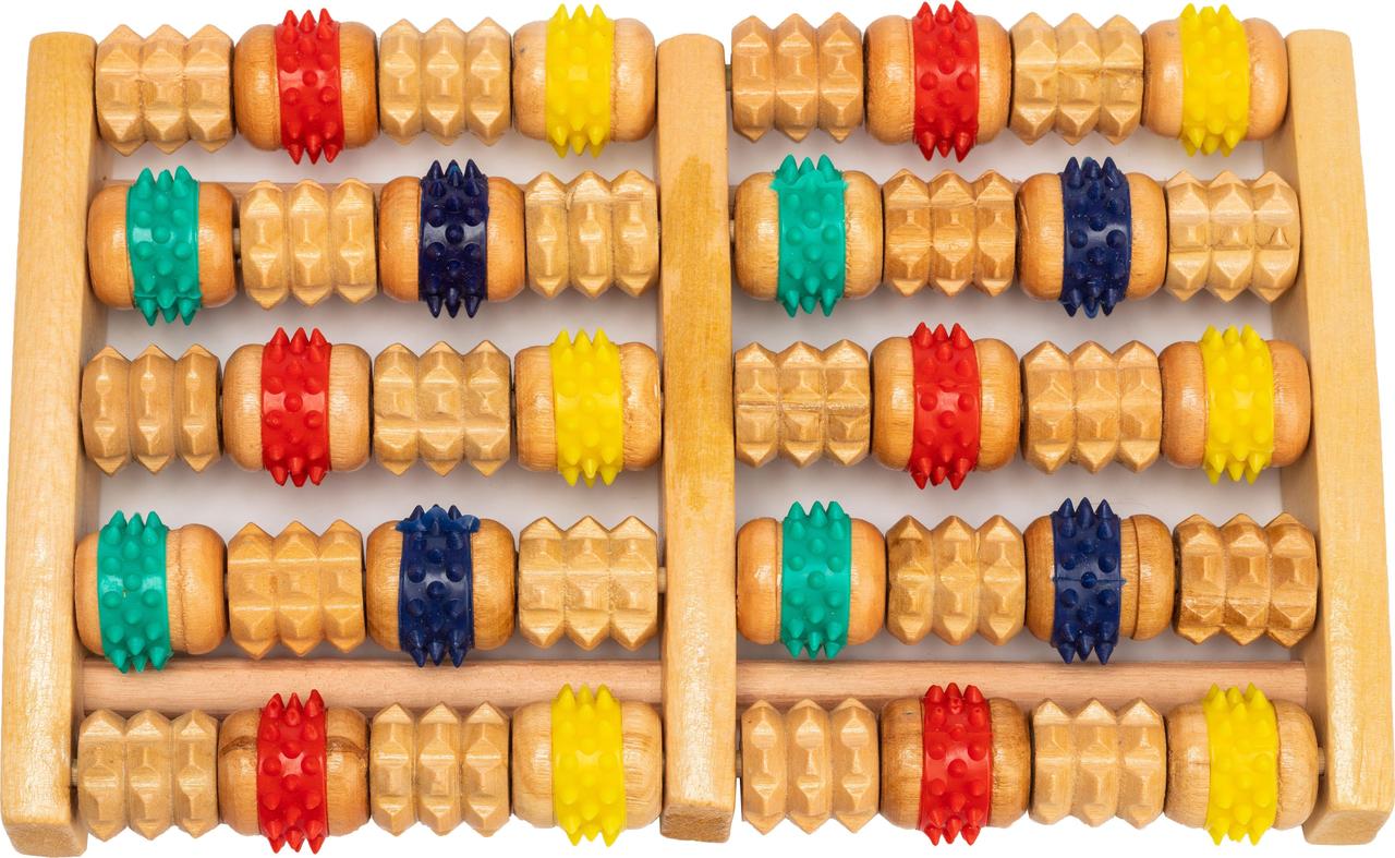 Массажер из натурального дерева приятен на ощупь, практичен и долговечен. 40 массажных роликов с разными видами шипов (дерево/резина) для акупунктурного массажа ступней, рук, спины и других частей тела. Такой деревянный массажер с роликами – самое простое решение для релаксации и снятия мышечного напряжения. Используйте роликовый массажер дома, в офисе, на даче, в долгой поездке, даже в бане после парной. Преимущества: ● Удобный размер для одновременного массажа двух стоп или ладоней. ● Сочетание мягких резиновых и жестких деревянных шипов. ● Безопасные и долговечные материалы.